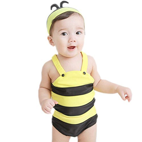 Arshiner子供用Bee Style One Pieceゴムビーチ水着水着with Hat カラー: イエロー