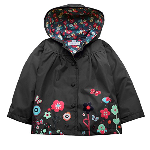 Arshiner 乳幼児/子ども 女の子用 耐水性フード付き コート・ジャケット アウトウェア レインコート フード付き US サイズ: 130(Age for 5-6Y) カラー: ブラック