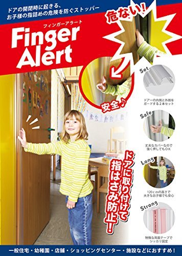 ヨーロッパで定番になっているフィンガーアラートです。お子様・お年寄りが指をドアに挟むのを防止します。丈夫なPVC製プラスティックで、長持ちします。両面テープがついていますので、取り付けも簡単です。