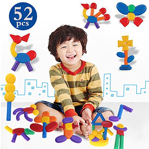 AsToy 遊び力を試される不思議な積み木 知育 おもちゃ 52pcs ブロック 型はめ パズル 男の子 女の子 誕生祝い 出産祝い