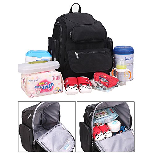 AsToy マザーズバッグ リュック 軽量 大容量 仕切り 撥水 ママ小物 マザーズリュク バッグパック(ブラック)