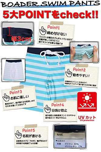 【Asbrio】水着 男の子 UPF50+ ボーダー柄パンツ グリーンラッシュガード 帽子 80〜130cm (80)