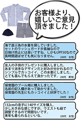 - ✅【 今最も人気のキッズ水着 】 杢グレープリントのラッシュガードと、ネイビーボーダー柄パンツと帽子がセットになったスイムウェア。生地はUPF50+でバッチリ紫外線を防ぐので、日焼けが心配な海や野外のプールでも思う存分遊べます。サイズは80から140cmまで7サイズ用意しています。赤ちゃんから、10歳くらいの男の子まで、幅広くお選び頂けます。洗濯タグには、NAME欄が付いているので、保育園や幼稚園で使用する時でも、カンタンに名前の記入が出来ます。 .