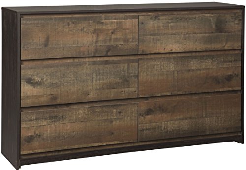 Ashley windloreコレクションb320 – 31 62 " 6-drawer Dresser with replicated Worn Throughペイントhandle-free引き出しとサイドローラーGlides in Dark