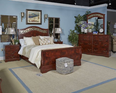 Ashley deliannaコレクションb223 – 31 63 " 6-drawer Dresser with Faux Burl Details on Drawers SculpturalハンドルとサイドローラーGlides in Reddish