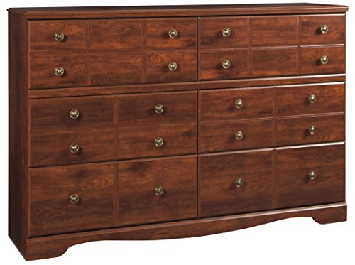 Ashley Brittbergコレクションb265 – 31 63 " 6-drawer Dresserのレプリケートチェリー木目SideローラーGlidesとアンティークゴールド調ハンドルでReddish