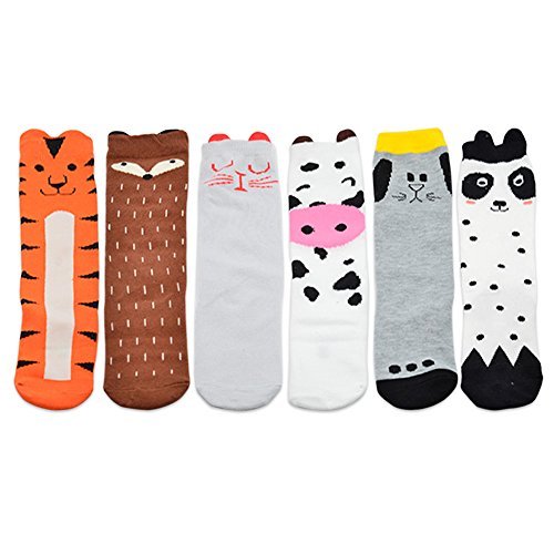 赤ちゃん膝高Cartoon Socks 6 Pairs with動物デザイン