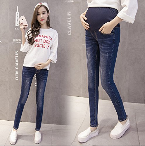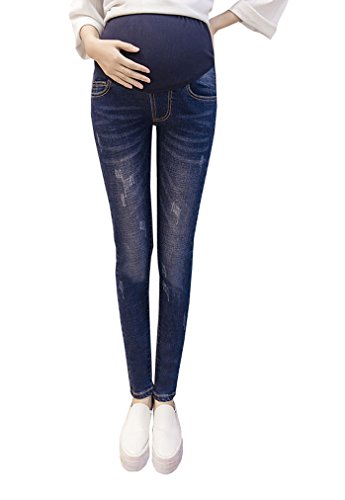 Asia Color マタニティ パンツ ズボン デニム ジーンズ スキニー 産前産後 ストレッチ レディース 妊婦 ポケット付き カジュアル 大きいサイズ おしゃれ (XL, ブルー)