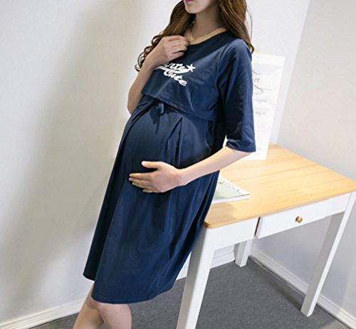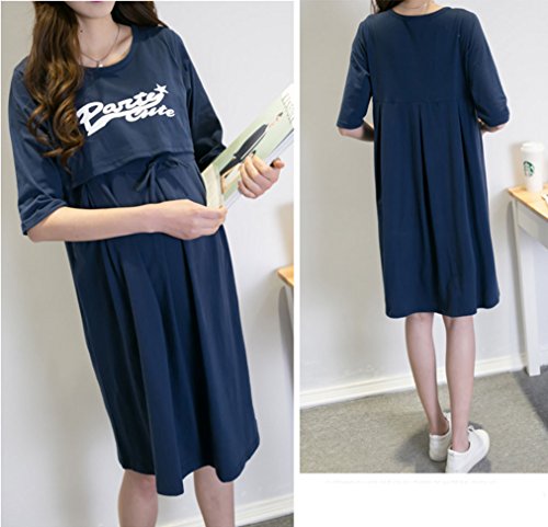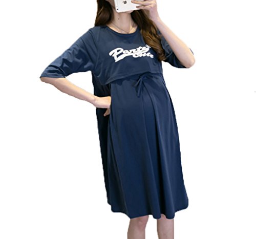 Asia Color マキシ 授乳服 ロゴ ワンピース ロング 丈 春 夏 楽ちん ルーム ウェア 授乳 服 マタニティ 授乳服 ワンピース ロング 半袖 プリント (XL, ネイビー)