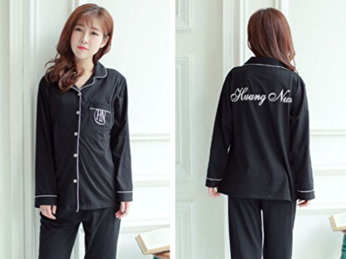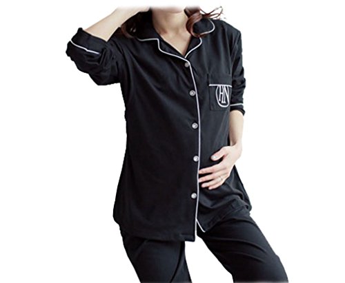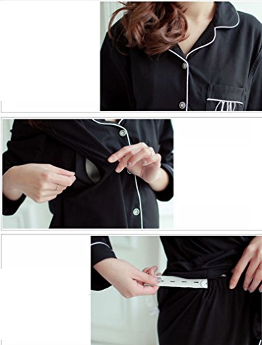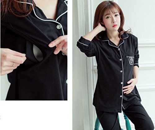 Asia Color コットンだから肌に優しい! マタニティ 授乳口付き ルームウェア コットン 前開き 産前産後 セットアップ 全3色(ピンク、ブラック、ネイビー) (L, ブラック)