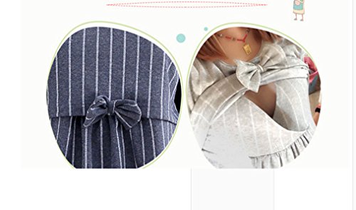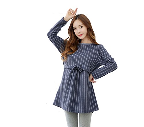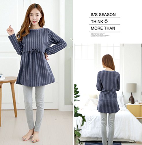 - Asia Color 授乳服 産前 産後 妊婦用 リボン ボーダー パジャマ 重ね着風 マタニティ トップス 授乳口付