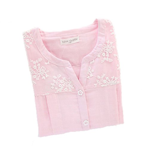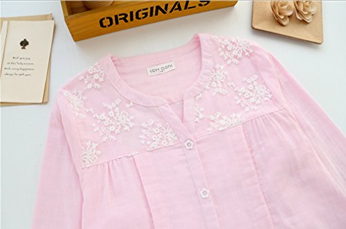 Asia Color マタニティ ナイトウエア 上下セット 授乳口付き 可愛いレース 肌に優しいガーゼ生地 ルームウエア パジャマ (XL, ピンク)