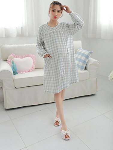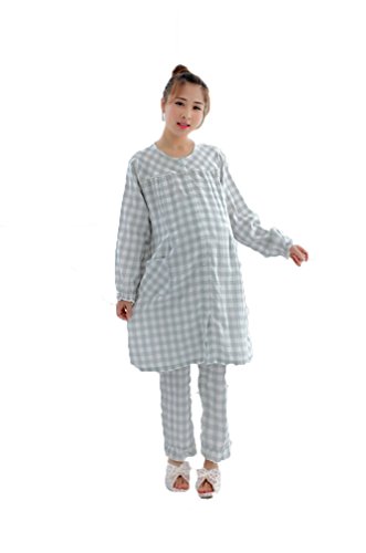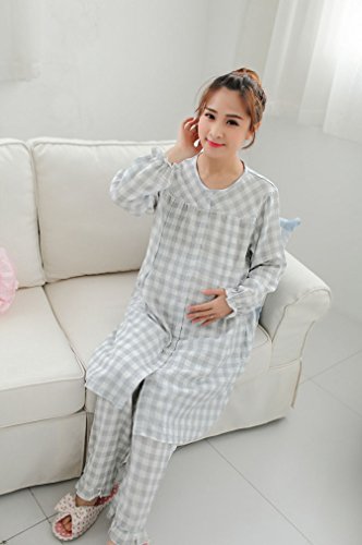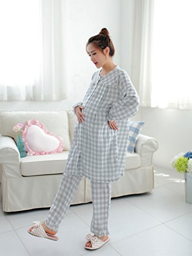 Asia Color パジャマ レディース 長袖 前開き チェック柄 上下セット 授乳口付き 可愛い 肌に優しいガーゼ生地 ルームウエア (XXXL(90-115kg), グレイ)