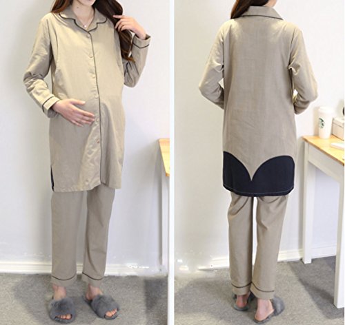 - Asia Color マタニティ パジャマ 授乳口付き 襟付き 長袖 妊婦服 産前 産後 前開き アジャスター調節可