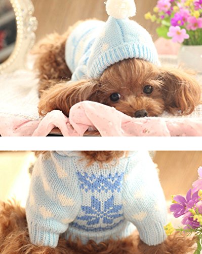 Asia Color ペット用 犬 服 おしゃれ で かわいい ノルディック柄 ニット パーカー (L, ブルー)