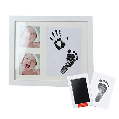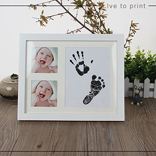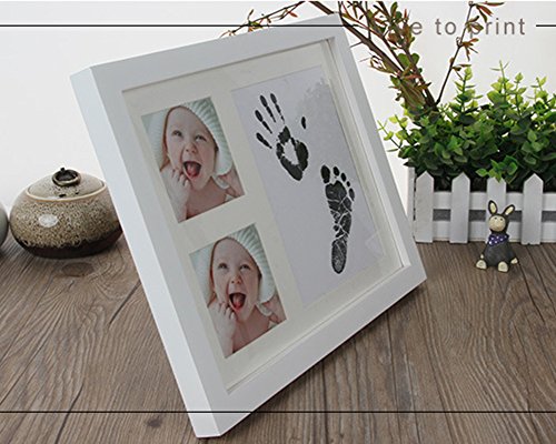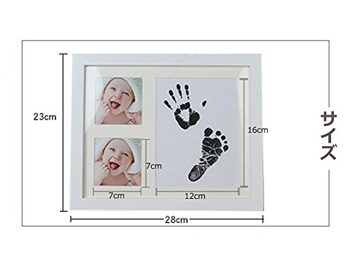 Asiso ベビー 手形 足形 フォトフレーム 写真立て 安全無毒 インク 男の子 女の子 出産祝い 誕生日 記念日 W28×H23CM ホワイト