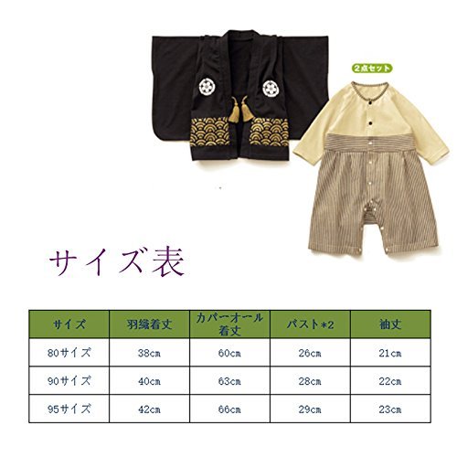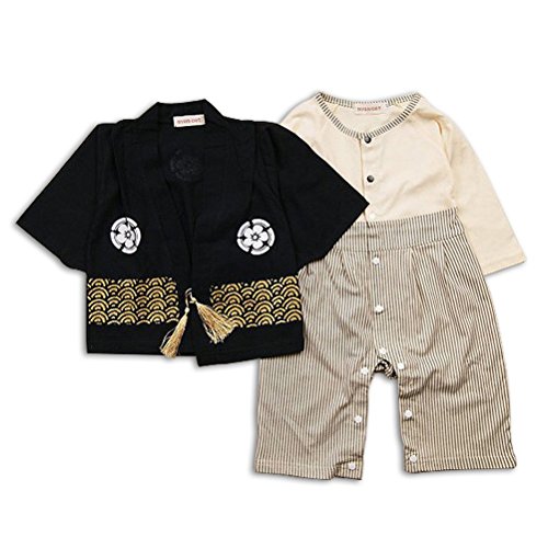 Asiso ベビー服 新生児 袴風 カバーオール ロンパース 男の子 和服 長袖 七五三 百日祝い 出産祝い ギフト 結婚式 90cm