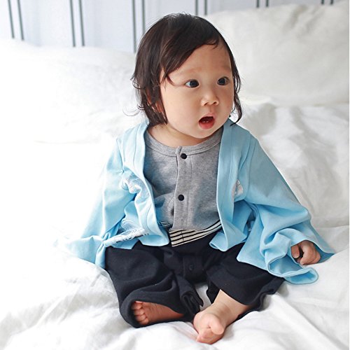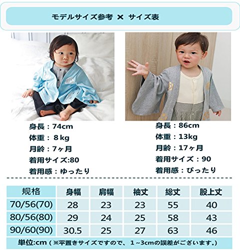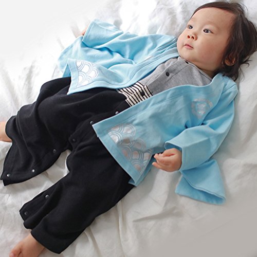 Asiso ベビー服 袴風 ロンパース 男の子 カバーオール 和服フォーマル 羽織 結婚式 出産祝い 初節句 (80, ブルー)