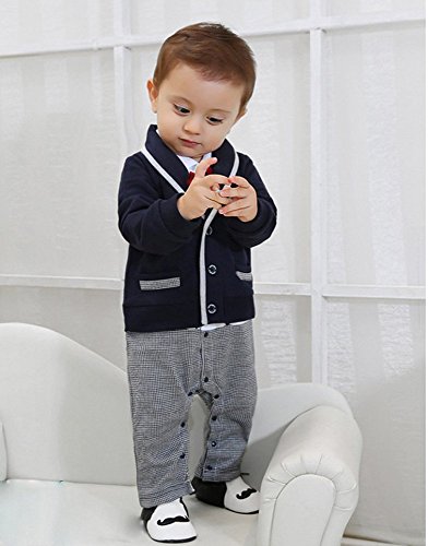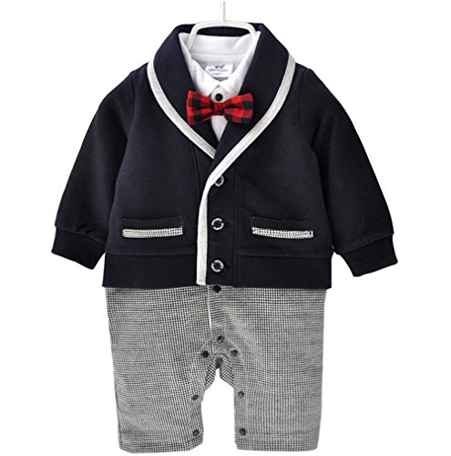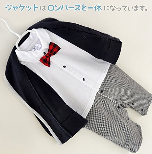 Asiso 子供服 男の子スーツ フォーマル ロンパース 赤ちゃん カバーオール 新生児 長袖 出産祝い 写真撮影 コン 60cm