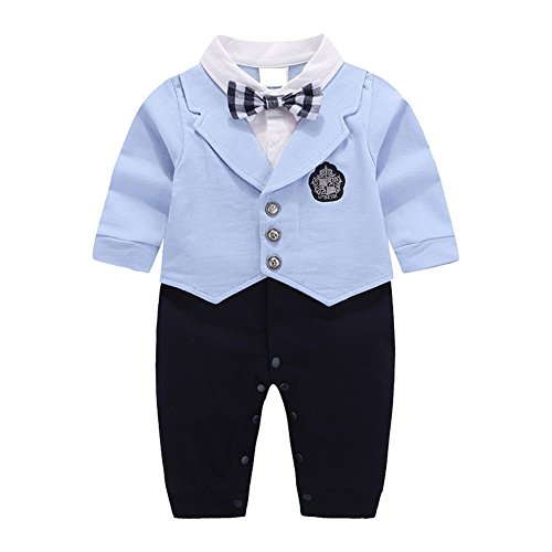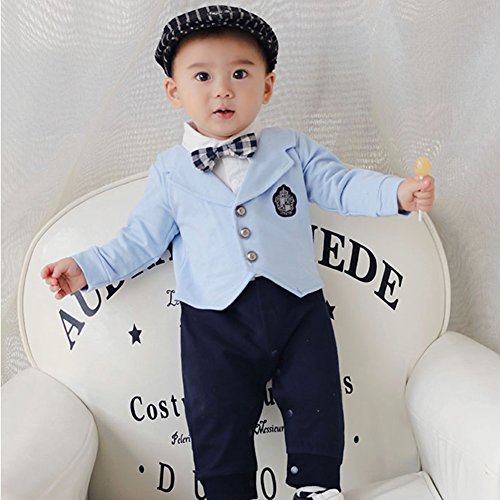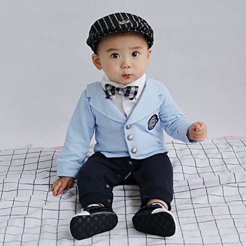 ベビー服 男の子 フォーマル カバーオール Asiso セレモニー ロンパース 前開き 半袖 蝶ネクタイ 2点セット 出産祝い お食い初め 初節句 (95, ブルー)