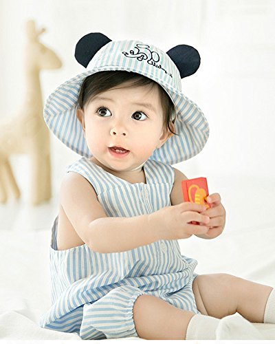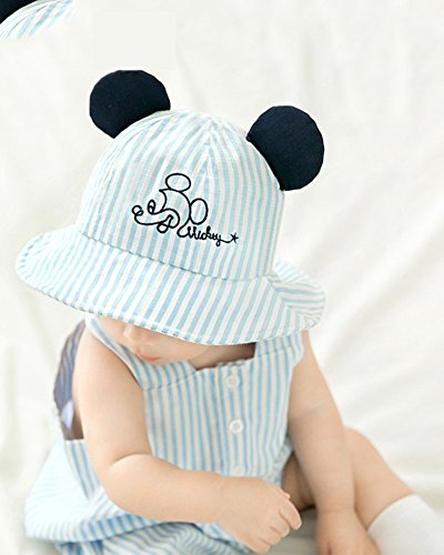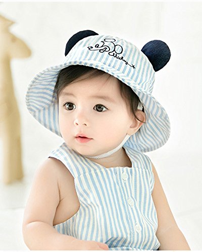 ベビー ハット 日よけ帽子 Asiso uvカット 紫外線対策 お耳付き 折りたたみ あご紐付き ストライプ 新生児 赤ちゃん 子供 春 夏 出産祝い ギフト 頭周り 44-48cm ブルー