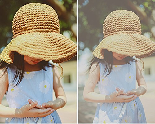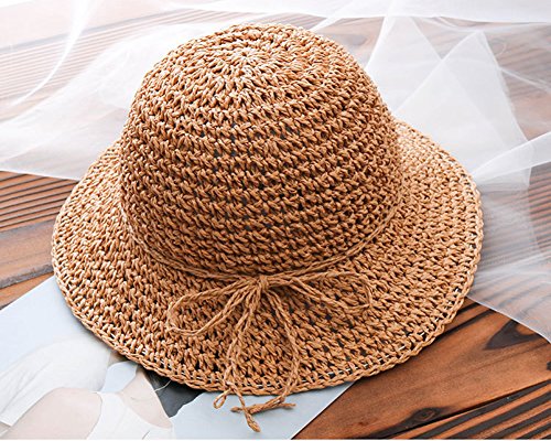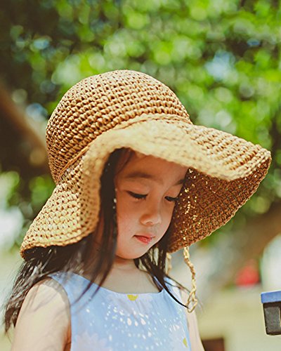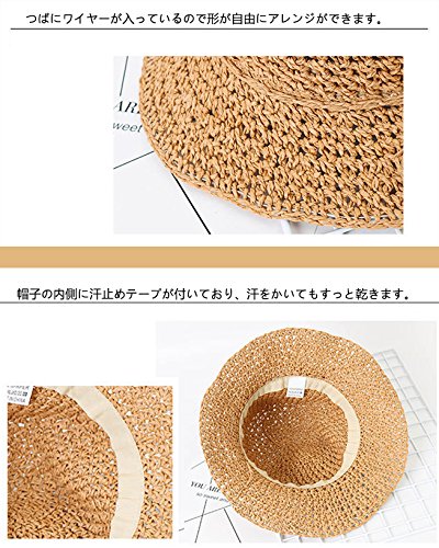 Asiso キッズ ベビー 麦わら帽子 ペーパーハット リボン 折りたたみ コンパクト 日よけ つば広 春 夏 旅行 お出かけ ブラウン