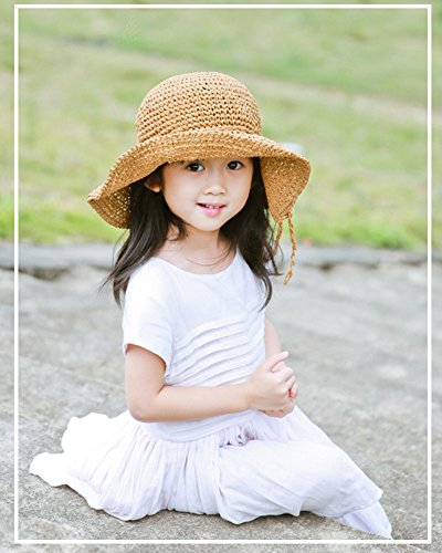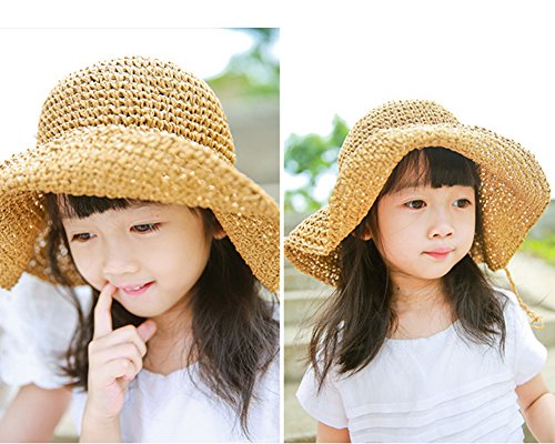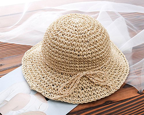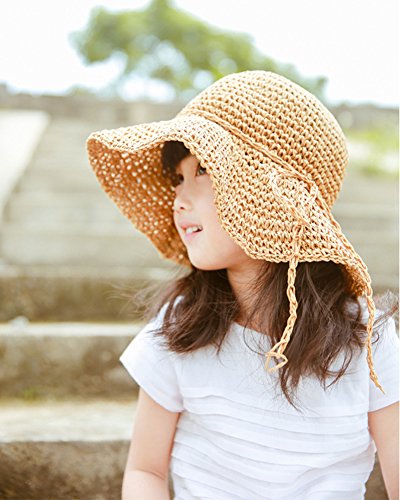Asiso キッズ ベビー 麦わら帽子 ペーパーハット リボン 折りたたみ コンパクト 日よけ つば広 春 夏 旅行 お出かけ ベージュ