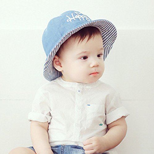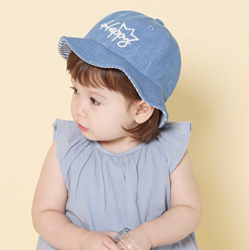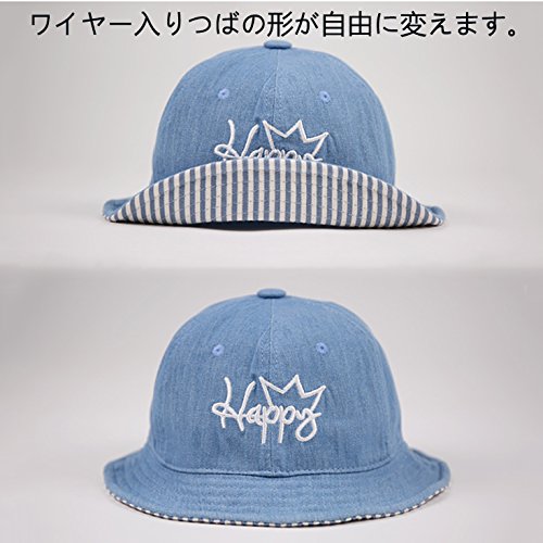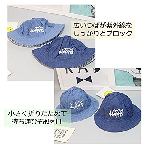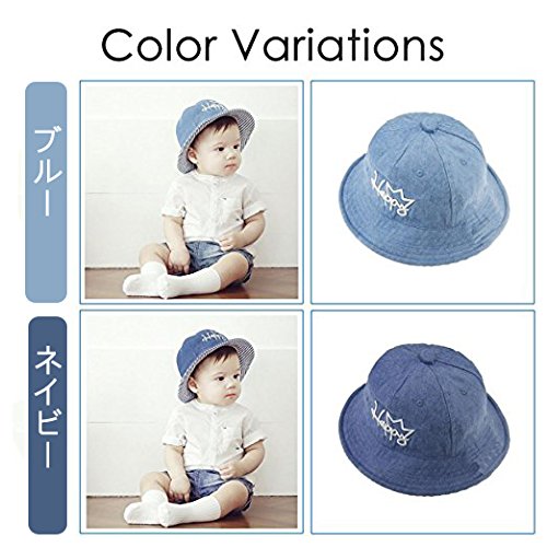 ベビー キッズ 帽子 デニム ハット Asiso uvカット 日よけ ワイヤー入り つば広 あご紐付 男の子 女の子 (頭周り 48cm - 53cm ( 6か月~3歳 目安), ブルー)