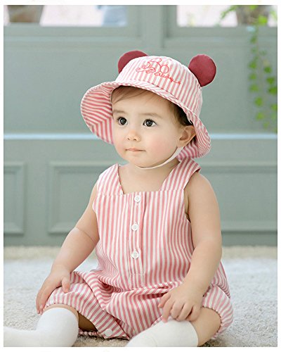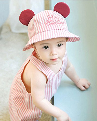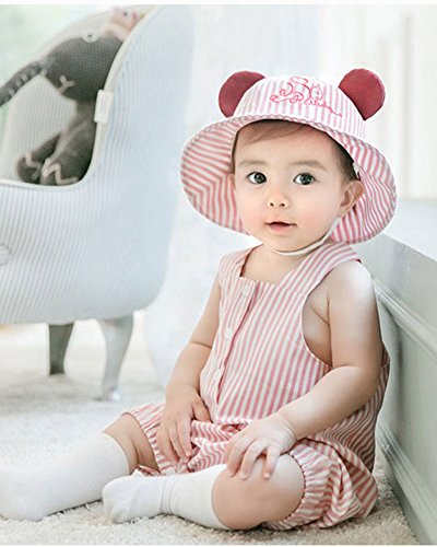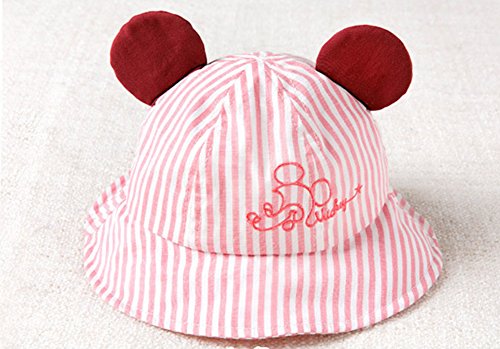 ベビー ハット 日よけ帽子 Asiso uvカット 紫外線対策 お耳付き 折りたたみ あご紐付き ストライプ 新生児 赤ちゃん 子供 春 夏 出産祝い ギフト 頭周り44-48cm ピンク