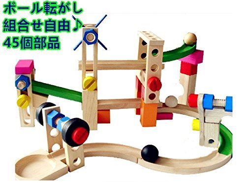 (アスコット) Askotto おもちゃ 知育玩具 木製 玩具 玉転がし スロープ 積み木 木のおもちゃ 45個 ブロック