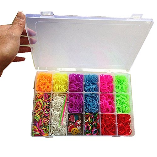 - 内容: 9色、ルームバンド3400ピース (1グリッド当たり200ピース)、クリップ150ヶ、フック4ヶ、チャーム3ヶ