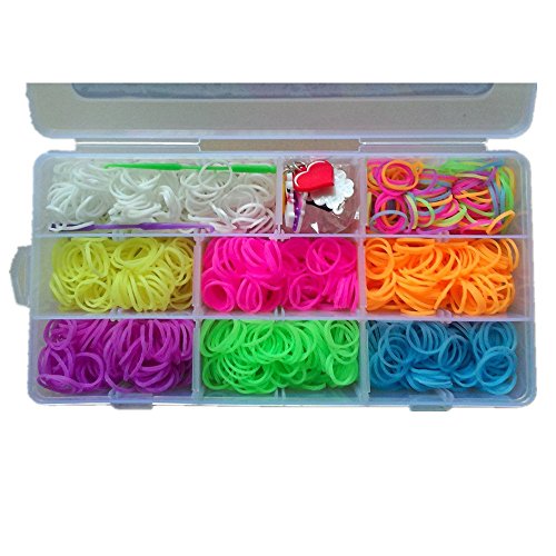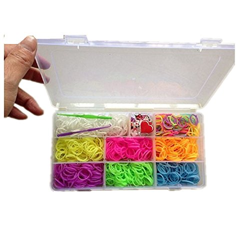 - 内容: 8色、ルームラバーバンド 1600ピース (1色当たり200ピース)、クリップ75ヶ、チャーム3ヶ