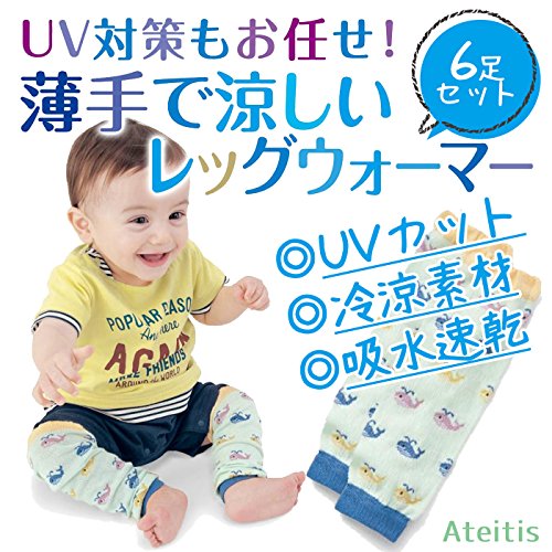 Ateitis 赤ちゃん 薄手 で 涼しい レッグウォーマー (6足 + ミニタオル) セット uv 紫外線 虫除け にも (男の子)