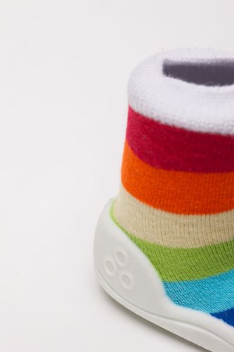 ソックスとシューズをドッキングした独特のフォルムは、赤ちゃんにとって自然に正しい歩行をサポートできるよう産学協同で生体力学の観点から研究を重ねて生まれました。