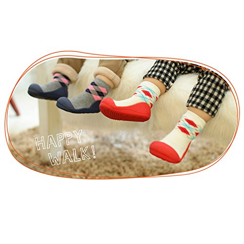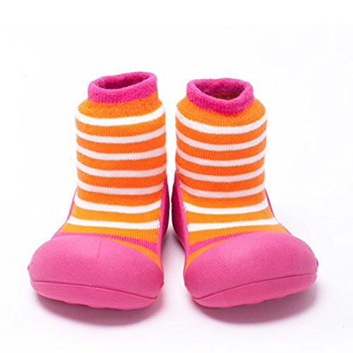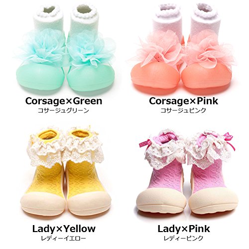 Attipas アティパス ベビーシューズ コサージュ アーガイル ボーダー トレーニングシューズ 女の子 男の子 子ども こども ファーストシューズ レース ジュニア|XL リングルピンク