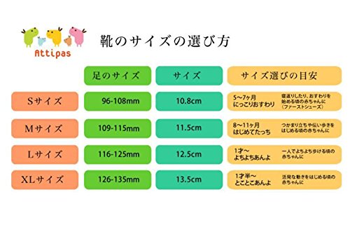- S:10.8cm(足のサイズ:96〜108mm、年齢:5〜7ヶ月)