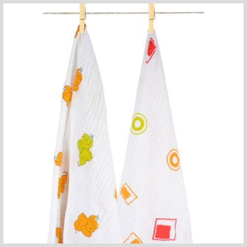 Welcome your bundle of joy with our Fashion Fiesta design - Includes two 100% cotton muslin swaddle blankets -elephants and geometric shapes. Aura Weavers baby blankets come in a variety of cute and cuddly baby-friendly designs - a perfect combination of safety, style, comfort, and elegance. The natural open weave of Aura Weavers blankets makes them über-breathable - helping your baby maintain a comfortable body temperature. This reduces the risk of overheating while keeping your baby snug and cozy.