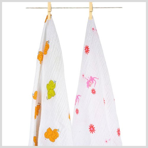 Welcome your bundle of joy with our Princess Giggles design - Includes two 100% cotton muslin swaddle blankets - fairy and elephants. Aura Weavers baby blankets come in a variety of cute and cuddly baby-friendly designs - a perfect combination of safety, style, comfort, and elegance. The natural open weave of Aura Weavers blankets makes them über-breathable - helping your baby maintain a comfortable body temperature. This reduces the risk of overheating while keeping your baby snug and cozy.