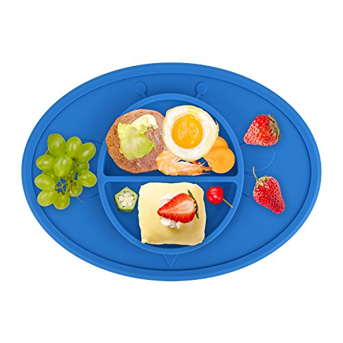 お食事マット ランチョンマット ランチプレート シリコン 離乳食 ベビー食器 赤ちゃん 子供 滑り止め(青)