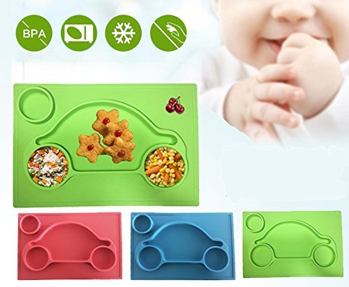 ひっくり返らないベビー食器 ランチョンマット キッズ 子供 ベビー 離乳食 スプーン 皿 しょっき 食器 シリコン ベビーチェア ハイチェア 吸盤付 滑り止め(青(車))