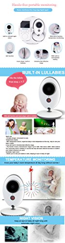 . - This video baby monitor is equipped a 2.4 inch LCD screen and connected to the baby camera via enhanced 2.4GHz wireless technology, clearly show our babies without WiFi interference Long battery life