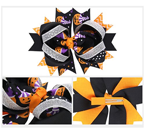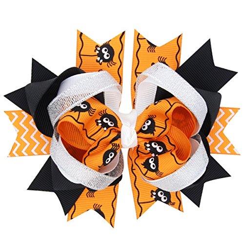 Autotime かわいい! 子供 手作り 髪飾り ハロウィン ボウ ヘアピン カボチャとスパイダー 3枚入り (スパイダー)