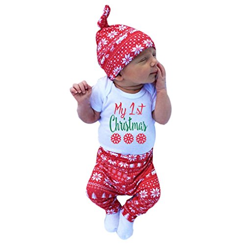 AutumnFall 3pcsクリスマス服セット新生児幼児赤ちゃん男の子女の子" My 1stクリスマス」Letterロンパーストップス+パンツ+帽子 6M ホワイト