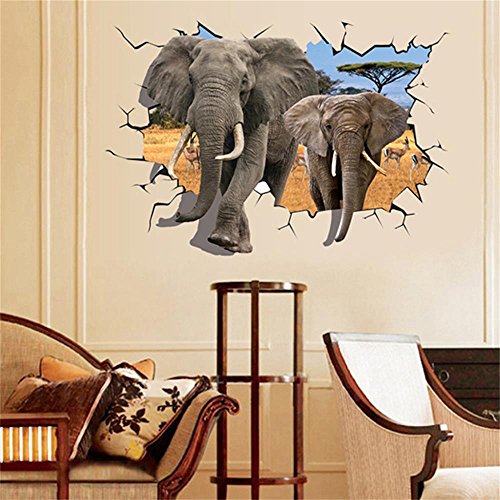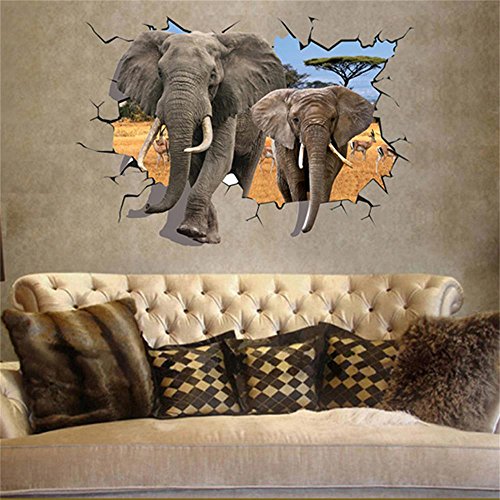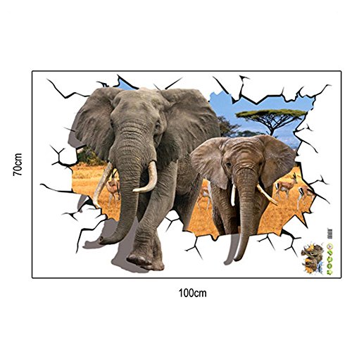auwer 3d African動物象Antelopeビュー壁ステッカーブリッジ床ステッカーBreak Through the壁アート壁画デカールfor子供部屋ホーム装飾リムーバブル- 70 x 100 CM