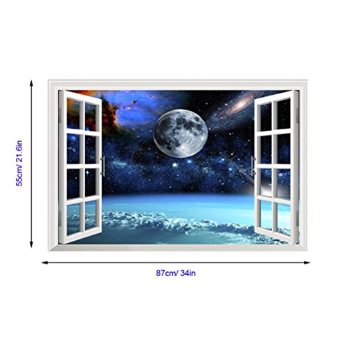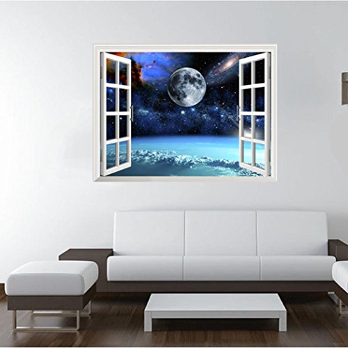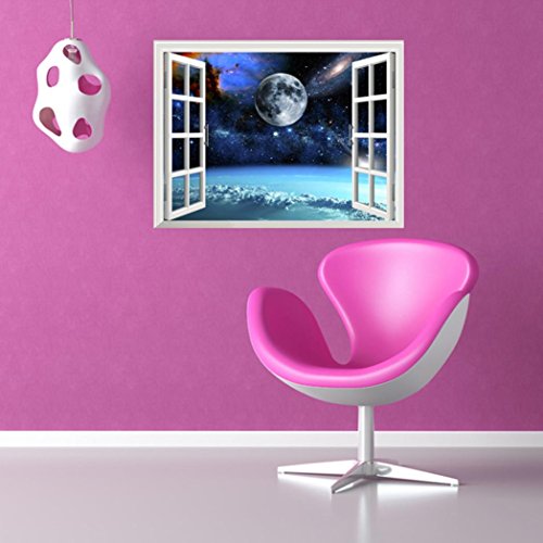 auwer 3d Mysterious Galaxy Spaceビュー壁ステッカーブリッジ床ステッカーBreak Through the壁ビニールアート壁画デカールfor Kids部屋ホーム装飾リムーバブル – 23.6インチx 35.4