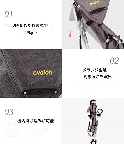 - AVALONスーパーライト超軽量ベビーカーは2段階背もたれ調節型ベビーカーとして2.9㎏の超軽量を実現化しママとお子様をより快適に過ごせるようにしました。