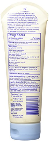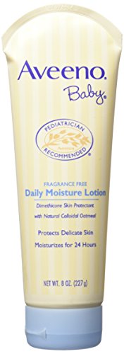 Aveeno? BabyTM Daily Moisture Lotion contains natural colloidal oatmeal blended with rich emollients to soothe and heal your baby's delicate, dry skin. This naturally nourishing, nongreasy formula absorbs quickly and moisturizes for a full 24 hours, and it contains no drying alcohols and won't clog pores. It is hypoallergenic and fragrance free, so it won't irritate sensitive skin. It's even gentle enough for newborns.