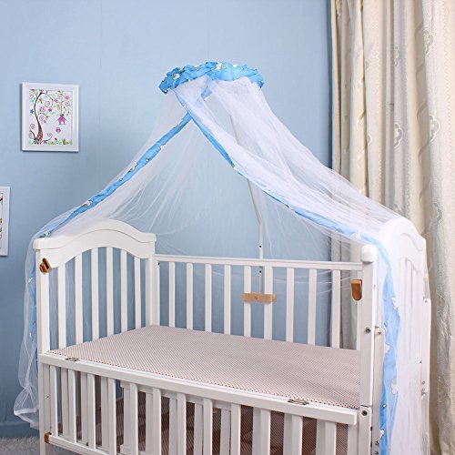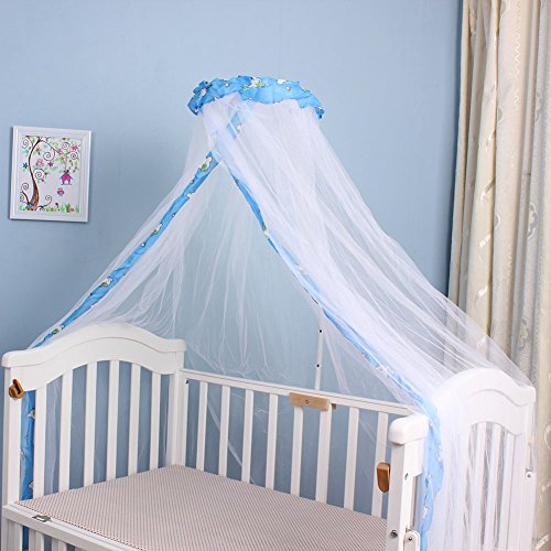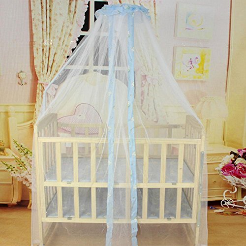 Mosquito Netting、awakingdemiベビー幼児用寝具バンパーラウンドドームベビーベッドベッドレース床タイプMosquito Netダブルシルクポリエステルメッシュ布ベッドネッティング ブルー 1nt6dh3hn5fz3hs2D02-US03