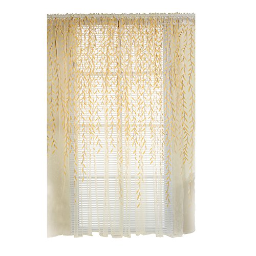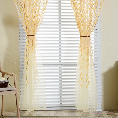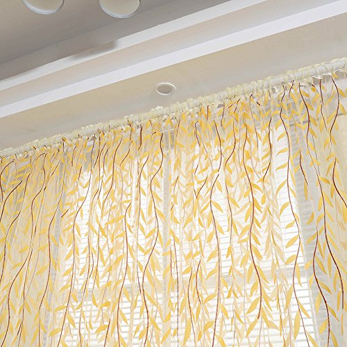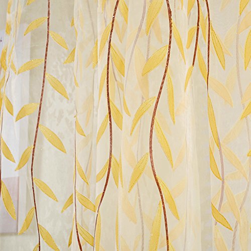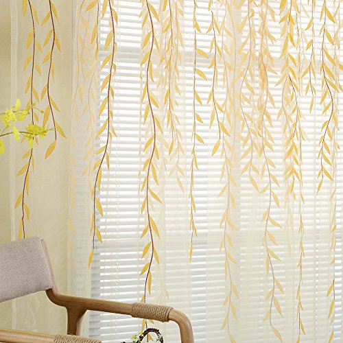 薄手カーテンパネル、awakingdemi田園スタイルWillowフローラルウィンドウカーテンの寝室リビングルーム装飾 イエロー 1wv3us4ns9fp2wm2