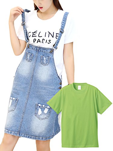[アズルテ] デニム サロペット スカート レディースファッション Tシャツ セット オーバーオール ジャンバースカート ライムグリーン